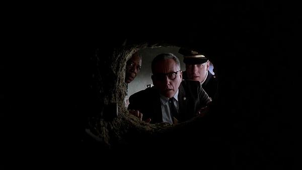 未过多久,安迪尝试接近囚犯中颇有声望的瑞德(摩根·弗里曼 Morgan Freeman 饰),请求对方帮自己搞来小锤子。以此为契机,二人逐渐熟稔,安迪也仿佛在鱼龙混杂、罪恶横生、黑白混淆的牢狱中找到属于自己的求生之道。他利用自身的专业知识,帮助监狱管理层逃税、洗黑钱,同时凭借与瑞德的交往在犯人中间也渐渐受到礼遇。表面看来,他已如瑞德那样对那堵高墙从憎恨转变为处之泰然,但是对自由的渴望仍促使他朝着心中的希望和目标前进。而关于其罪行的真相,似乎更使这一切朝前推进了一步…… .png)