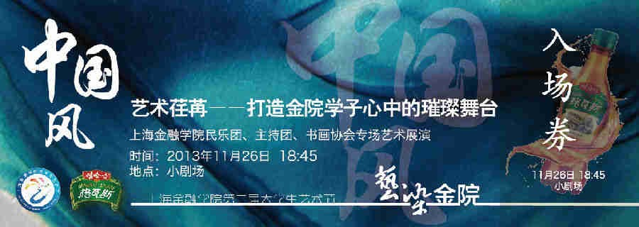 第二届大学生艺术节“艺染金院”“中国风”专场抢票活动已经开始啦!!!转发信息的同学每人凭借状态或者截图可以领取入场券两张,转发并评论信息的同学将可以领取VIP一张。以票换票:中国风专场当天演出结束后将在小剧场门口开设三个盖章处,届时同学们可以前往盖章。盖过章的同学将有机会凭借已盖章的入场券获得“舞·迹”舞蹈团专场演出的VIP票,同时这也是“舞·迹”专场VIP获得的唯一方式。