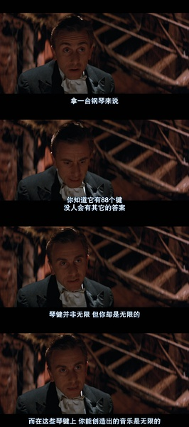 然而他最后选择的却仍是他的钢琴,他的大海。他说,钢琴只有88个键,但是外面的世界,却是有着无数黑白键的巨大钢琴。他无法驾驭。