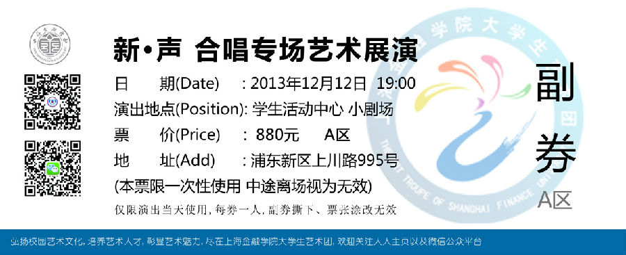 上海金融学院大学生艺术团人人,微博平台及微信公众 平台“微能量聚金院”抢票同时进行中!