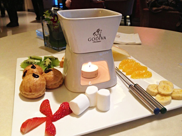 ▌超过七八十年的悠久历史,是全球知名的最精致手制巧克力的创造者,更被甜食爱好者们称为“巧克力中的法拉利”。可见其巧克力品种出众!其中巧克力火锅周围用各式水果摆盘,采用优质巧克力酱,口感细腻柔滑浓郁。坐在二楼靠窗位,边欣赏街景边品尝口中滋味,好不惬意!