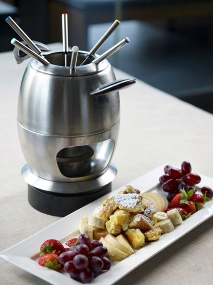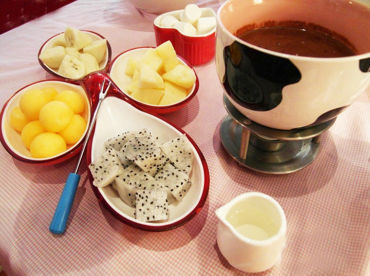 ▌巧克力火锅是一种瑞士火锅(Fondue,法文意指融化)。当浓香的巧克力放入锅中用慢火煮融,加入香滑奶油,蘸上水果、饼干或面包等食材后,香味交融,带给味蕾极致的享受!