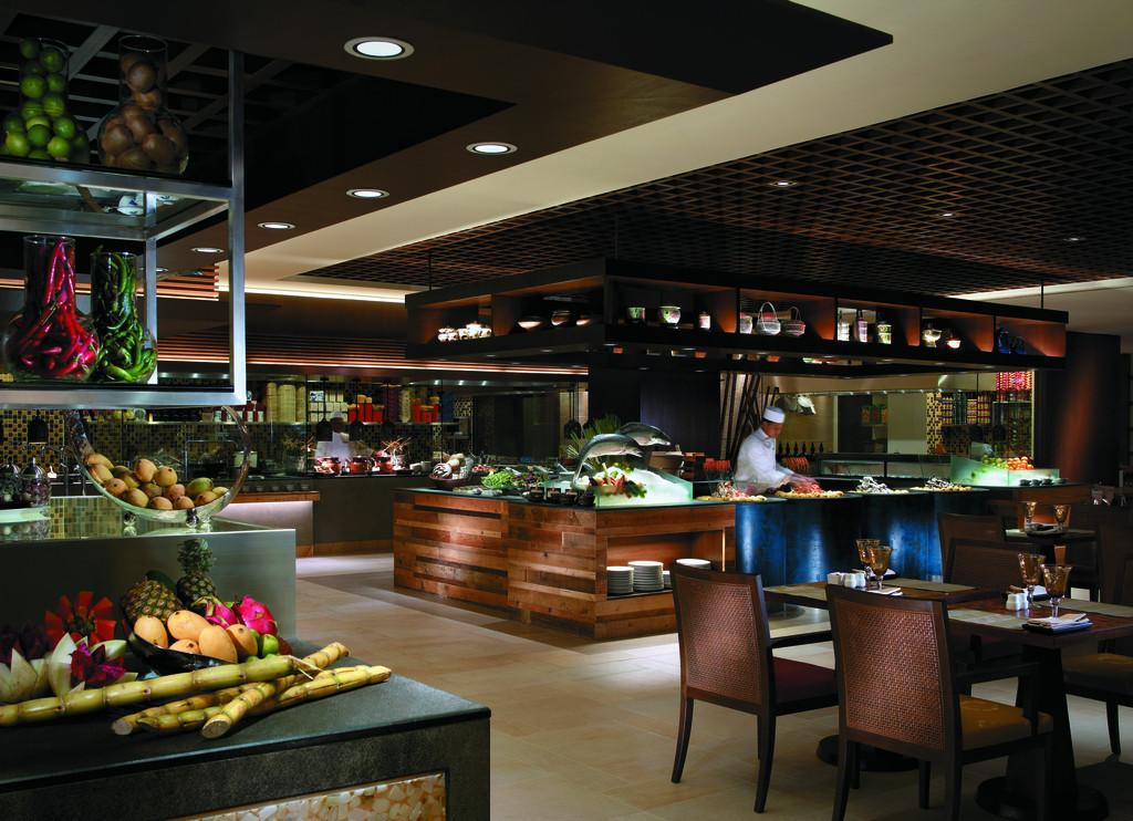被世界美食包围,几近“迷路”,味觉美好到晕眩。中国、日本、印度、东南亚、欧洲等不同风格的料理台和开放式厨房如同摩拳擦掌的方阵,意气风发地展示他们的风采。有六大主题开放区:日式料理区、中餐区、西餐区、烧烤区、素食吧和饮料吧等。想吃的基本都能找到,补菜很及时,但好东西都要排队,有机会不妨去试试吧。