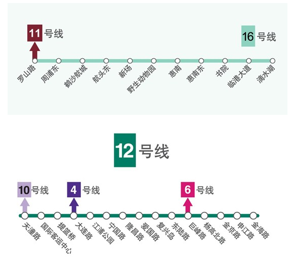 本周日起试运营的12号线运营时间为6点至22点55分。沿途共设15站,运营总长19公里;16号线运营时间为6点至22点58分。沿途共设11站,运营总长52公里。