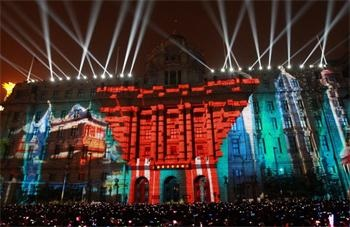 “外滩灯光秀”已经连续两年成为上海倒计时狂欢的首选项目,从裸眼3D到裸眼4D,在长达100多米的外滩建筑上投影出上海人的梦想。
