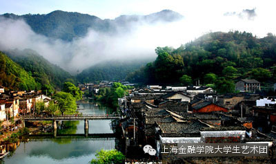 瑶里的美是安静的,脱俗的,空灵的,带着一种远古的幽然。她就像是一幅古朴清丽的江南山水图,清幽、典雅、恬淡、空渺。青翠欲滴的群峰簇拥着一条逶迤清浅的瑶河,中央横卧着一座石桥和一座木桥。桥两端埠头上有洗衣、淘米的村妇,隐约听到有棰衣声在瑶河间回响。沿河两岸,古树依稀,明清风格的民宅错落有致,悠长模糊的徽州古商道,带着一种苍凉厚重之感,憨朴的农家人行走于土石小路上……眼见之处都透着一份古风古韵,仿若回到那远古的年代。
