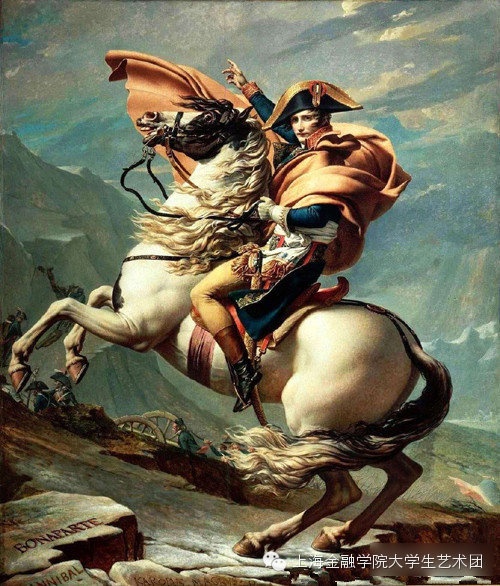 此幅作品是达维特第一次刻画现世的英雄,此前,作者只塑造和歌颂古代和已故的英雄,由此可以看出他对拿破仑的崇拜之情。本画的妙处在于,远景的简约和近景的细腻,色彩的冷暖对比极为强烈,人物和战马的细节刻画非常到位。对于这个理想化的形象,拿破仑本人也十分满意。