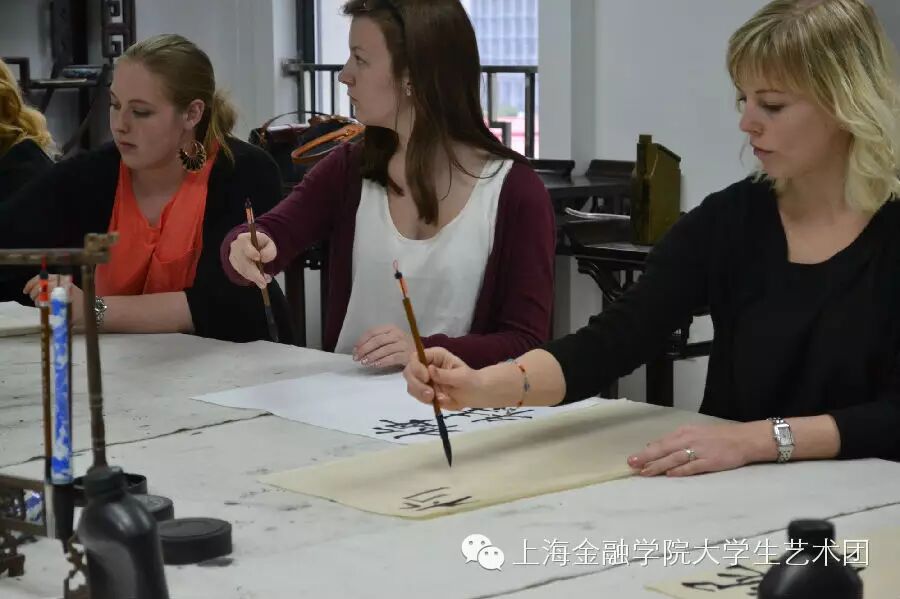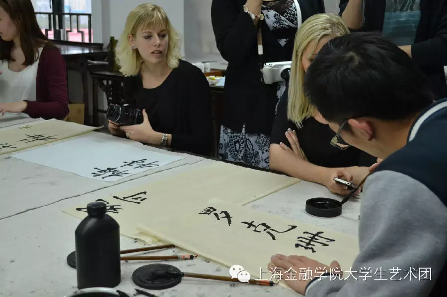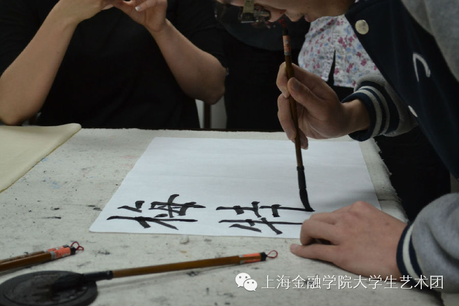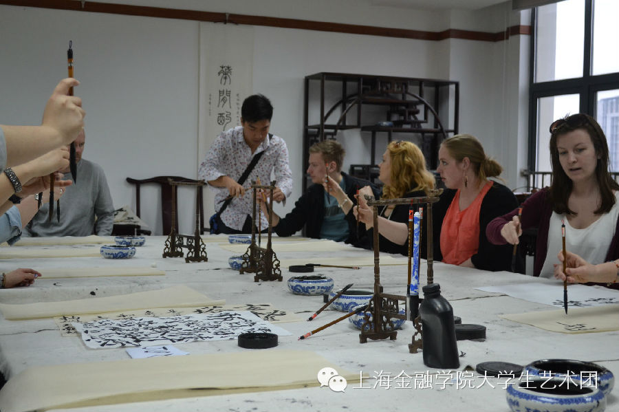 24日下午,为促进中外学子的交流,我们艺术团与中丹学院合作,带领着我校丹麦交流生进入学生活动中心506民乐团练习室。让同学们亲身感受中国民乐的古典风采。接着转移地点至隔壁508我校的书法协会中心,通过毛笔,给同学们带来了一场视觉的享受,拿起毛笔,在白色的宣纸上轻轻挥洒,闻着墨香,瞬间抚平浮躁的心境,让所有人沉浸其中。