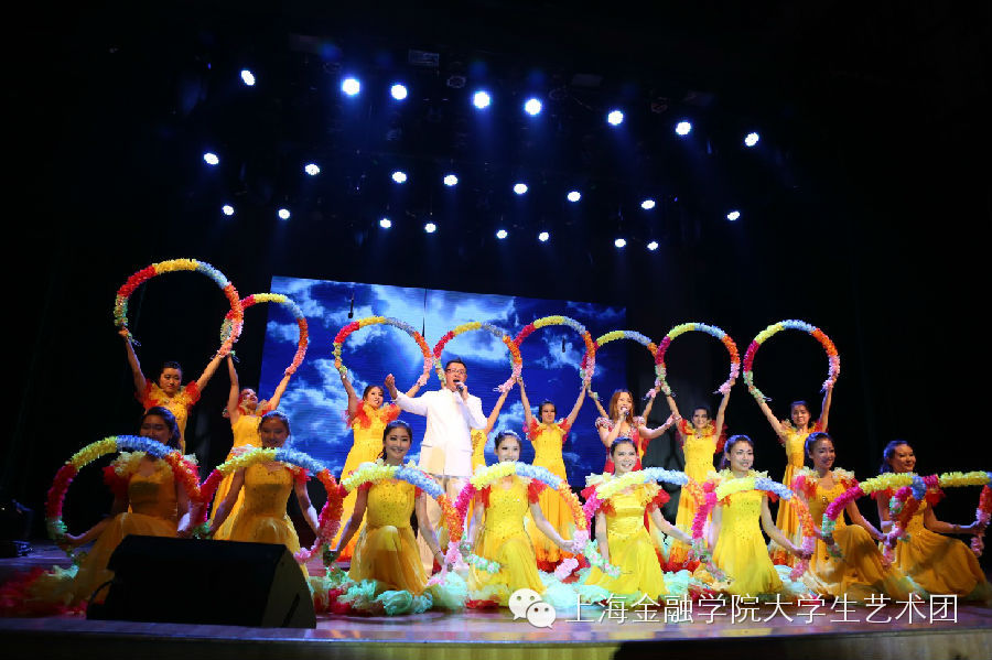 本台演出由上海金融学院校学生合唱团、舞蹈团、主持团、民乐团以及国金学院的同学联袂奉献。合唱团传唱了《菊花台》《夜来香》等一批耳熟能详的经典歌曲,营造了其乐融融的现场氛围。金舞团则带来了丰富多彩的舞蹈,既有民族舞《茉莉芬芳》,也有现代舞《TRY》以及原创保留节目《金算》等,给各年龄段的群众以视听的盛宴。最后整台晚会在上海金融学院校团委老师张晓明、魏启旦的歌伴舞《阳光路上》达到高潮,全场观众在宏伟悠扬的旋律中迟迟不肯离去,晚会在一片赞声中落下帷幕。