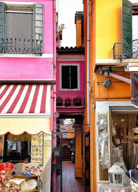 有人说, 与其在主岛迷走,不如去外岛看一下不一样的威尼斯。彩色岛是一个童话的梦,世外桃源般的坐落在海中, 那么斑斓,那么绚丽, 令人眼花缭乱. 远离主岛的喧嚣, 在这里享受片刻的宁静, 温暖的阳光, 缤纷的色彩, 种满鲜花的窗台,在这里连时光都会变的散漫,恍若寻找回了童年时才有的五彩梦境。