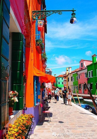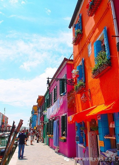 这些多彩的房子一个挨一个组成彩虹一样的小巷,夹着清澈的小河曲曲延伸,同样色彩明快的小船静静地停在河边。这里男人们外出捕鱼, 女人们在家里缝制蕾丝制品,这里是一个梦幻版的威尼斯, 比威尼斯更简单, 更安详, 更快乐。