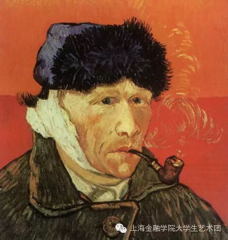 40.《耳朵绑着绷带叼烟斗的自画像》