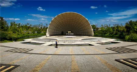 公园的设计突出生态恢复及文化重建理念,不仅让原有的滩涂湿地在设计中得到有效的保护,并在沿江岸线一侧利用大小生态岛的组合及潮起潮落的水位变化,营造11公顷的迷人湿地景观。