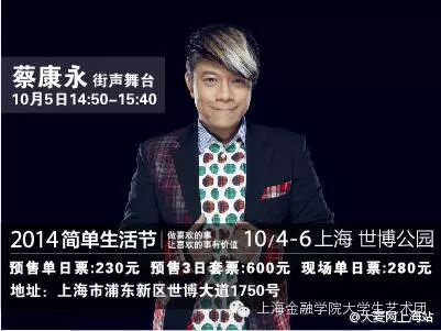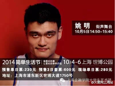 【上海简单生活节阵容名单】国内艺人,李宗盛、苏打绿、张惠妹、Hebe田馥甄、蔡健雅、张震岳、陈绮贞、朴树、张楚、许巍、黄贯中、杨乃文、万芳、陈珊妮、徐佳莹、霍尊、中孝介、F.I.R的主唱Faye、王若琳、韦礼安、卢凯彤、卢广仲、魏如萱、宋冬野、莫西子诗、梁博、郝云、赵雷、逃跑计划、那我懂你意思了等。国外艺人,“电视”Television乐队、来自英国的UB40雷鬼乐队。分享书房单元,姚明、蔡康永、张艾嘉、作家金宇澄、梁文道、张培仁、张永、张大春、沈宏非、尔东强!