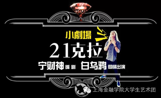 经过了近两个月的精心准备,白乌鸦剧社本学期最大制作《21克拉》即将在10月23号(下周四)晚上在学活小剧场上演!!!