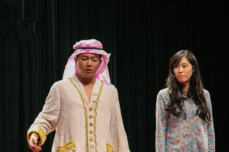 《21克拉》讲述了一个酷爱奢侈品几乎上瘾的拜金女和一个极品抠门男相知相恋相爱的故事。其内容在让人捧腹大笑的同时又引人深思,什么才是真爱。演员们在台上尽情的演出,挥洒着汗水和情感,深入人心的将爱情的真谛诠释出来,而演员们的夸张演绎则把戏中人物各方面的情感都表现得淋漓尽致,可圈可点,很好的将这部戏的主题思想反映出来。他们时而毒舌腹黑,时而饱含深情,时而针锋相对,时而相处融洽,每个人都随着跌宕起伏的剧情而紧张揪心亦或会心一笑。而演出过程中男女主角还走下舞台与同学进行了“卖月饼”互动,将台上台下的气氛共同点燃,引发一阵阵经久不息的欢呼与掌声。演出末尾,参与演出的成员在舞台献上致辞为整场精彩纷呈的演出画上了圆满的句号。