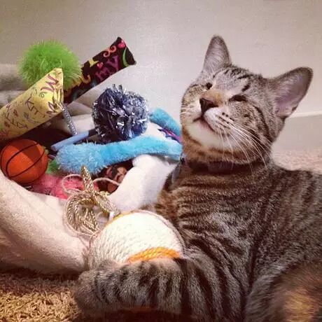 一只盲猫的生活姿态持续给予许多人感动和勇气。“奥斯卡”(Oskar)天生失明,患上眼球无法正常发育的“小眼球症”。2011年5月5日,出生在美国爱荷华州某农场。当住在内布拉斯加州奥马哈的Mick 和Bethany 夫妻打算领养第二只猫时,刚好在网站看到招募奥斯卡养父母的贴文,当他们得知奥斯卡天生目盲后,当下收养它。主人将奥斯卡玩吹风机的影片上载到YouTube ,不料竟获得众多反应,CNN 以及其他媒体竞相报导,变得超有人气。主人又制作了一部介绍奥斯卡的影片“奥斯卡的第一次的玩具”。于2012年获得猫饲料厂商“Friskies”举办的猫影片大奖,奥斯卡因此而获得15000美元奖金。影片中奥斯卡只凭听力一心一意追赶铃铛球的身姿,完全让人看不出其实它看不见这个世界。全世界的猫奴以及非猫奴都为之感动。