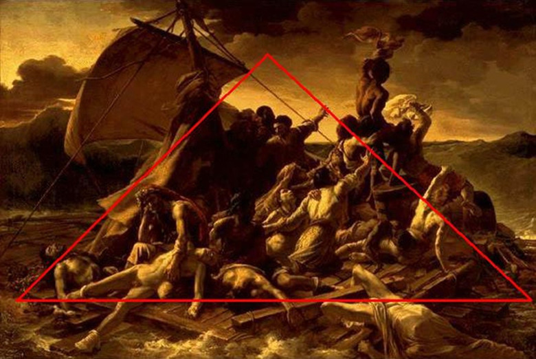 当然也有繁复多杂的三角构图,下面我们就来个炒鸡复杂的三角:《梅杜萨之筏》