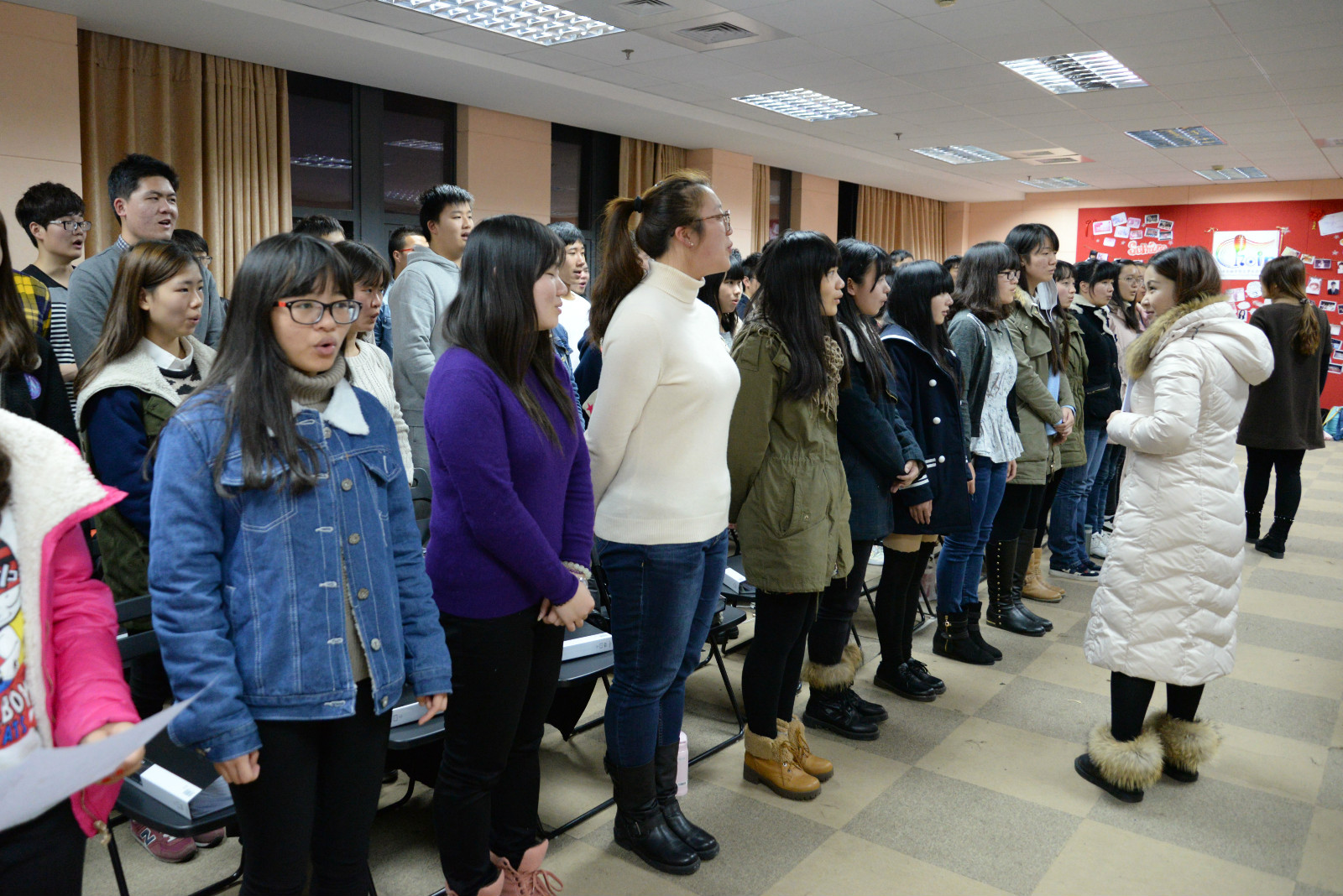 12月8日晚19:00,上海金融学院团委老师、大学生艺术团副秘书长魏启旦对校合唱团新年音乐会节目进行了第一次审核。