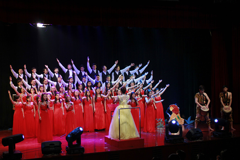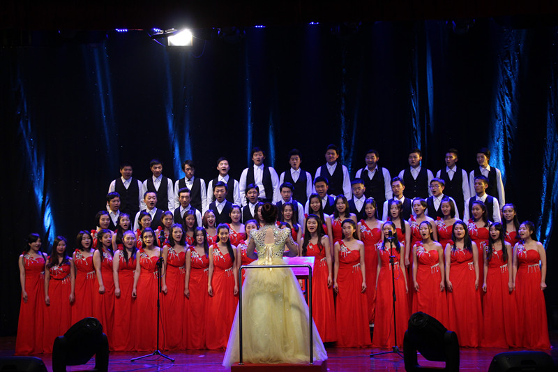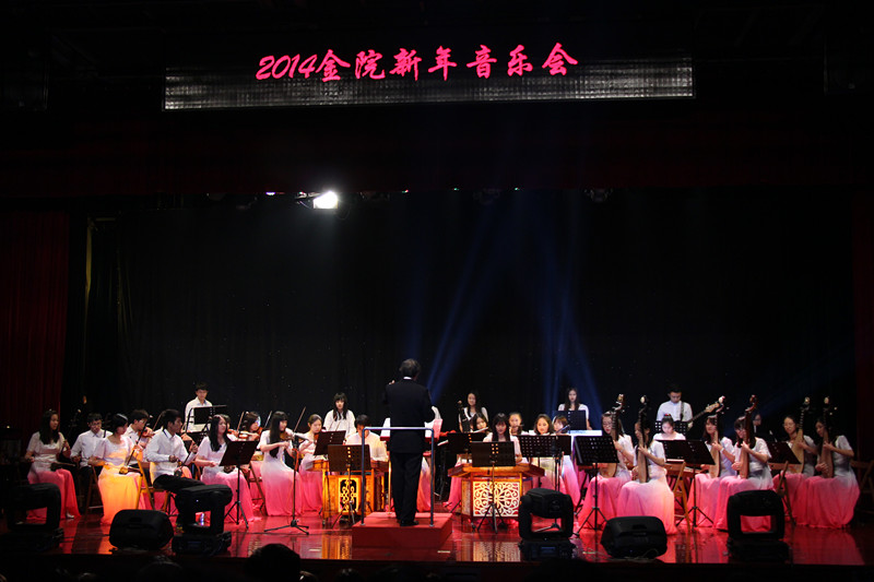 本次新年音乐会以世界的声音为主旋律,我们汇聚在这里,由我校金声合唱团和霏梵民乐团将不同国家、不同时代、不同风格的曲目融汇于一堂,唯美、狂野、古典、现代完美的歌声与不同乐器的旋律交相演绎,或宁静,或激昂,为听众呈现了一个与众不同的音乐世界。音乐会的结尾由我校艺术团副秘书长魏启旦老师和男高音张晓明老师合唱《我的祖国》以及魏启旦老师倾情献唱《一杯美酒》,以饱满的热情表达了在新的一年里对祖国母亲的美好祝愿。 本场演出力求通过不同的音乐形式来表现我校大学生高雅的艺术情操,全方位展示艺术团近年来厚积薄发,以昂扬的斗志,百倍的信心迎接崭新的挑战,以打造金院学子的艺术舞台为己任。这场青春激昂的新年音乐会将新的一年美好憧憬与祝福送到了每一位观众的心中,赢得了大家的一致好评。
