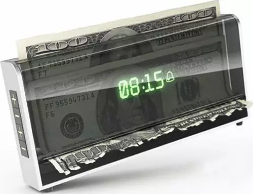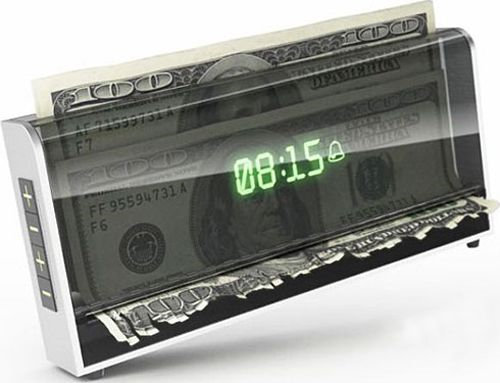 一款丧心病狂的闹钟,使用方法很简单,就是有闹钟上有一个专门放钞票的槽。如果到点闹钟响了,却没人起床关闹钟,闹钟就会变成碎纸机,把里面装的钞票一张一张地粉碎。放个五六百块在里面,早上闹钟一响保证整个人都弹起来。