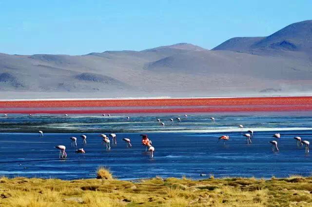 盐湖 " 天空之镜 " 红湖火烈鸟、羊驼成群,的的喀喀湖