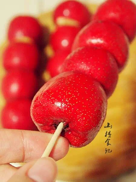 山楂洗净去蒂穿上竹签