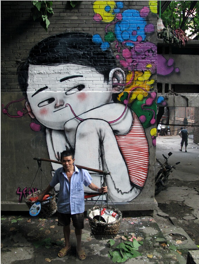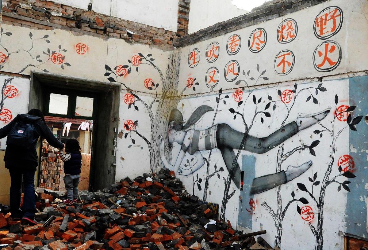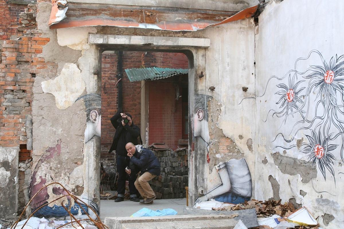 最近他来到中国,在上海康定路600弄一处正在施工的拆迁基地留下了诸多涂鸦作品,走红国内网络。