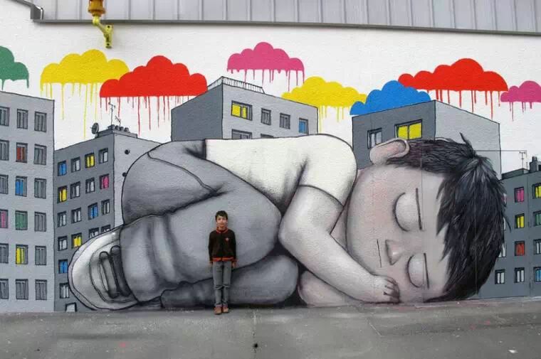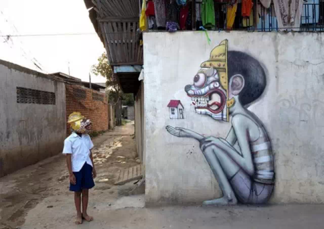 来自法国的街头艺术家Julien Malland,热爱街头涂鸦艺术,历游世界,在很多国家和地区留下了自己的作品。