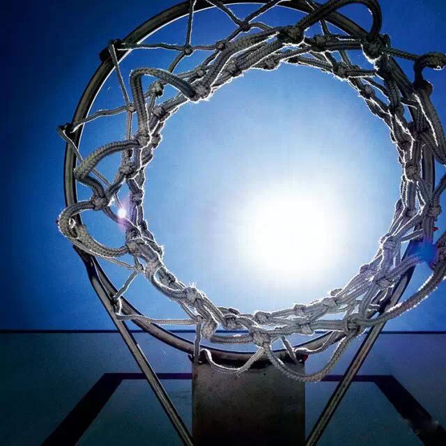 刻意站在篮框下取景,太阳是即将破网的篮球