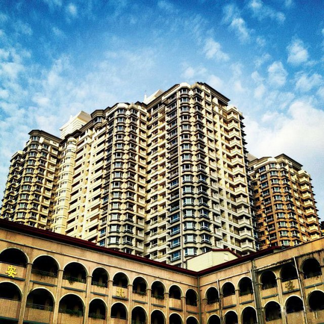 看上去像庞贝城和城墙的照片,其实是社区大楼及学校的组合