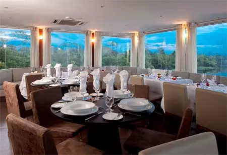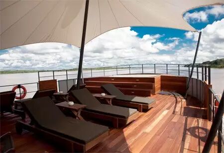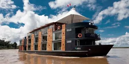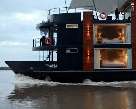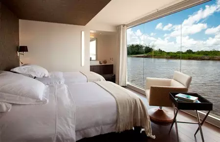 漂浮酒店有空调房间和大窗户提供惊人的全景观看美丽的亚马逊雨林。