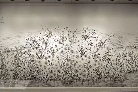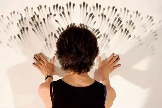 自于纽约艺术家 Judith Braun 以'指法( Fingerings )'为主题的系列作品。作品恰如其名,艺术家在创作的过程以双手手指替换了传统的画笔,于指尖浸染上木炭灰后在墙壁上挥舞。通过左右手的相互协调,不管是巨幅山水画还是其它作品,你都可以发现其中无所不在的对称之美。如此有趣而粗犷的作画方式却带来这么优雅的作品,令人为之惊叹。