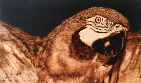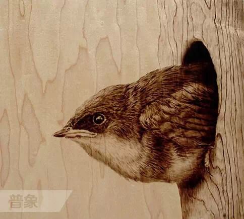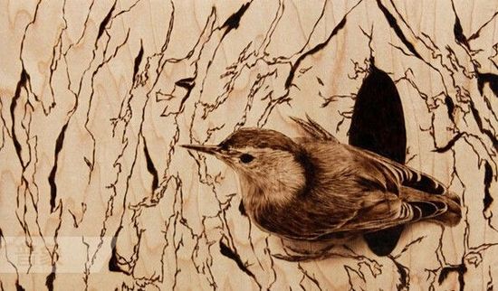 用火烧烙铁在木板上作画称为烙画,又称烫画,火笔画,烙画是古中国一种极其珍贵的稀有画种,源于西汉,现在已不常见到。来自美国艺术家julie bender在枫木上绘制的精美烙画作品。