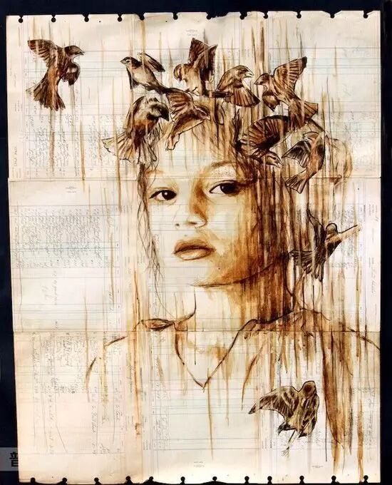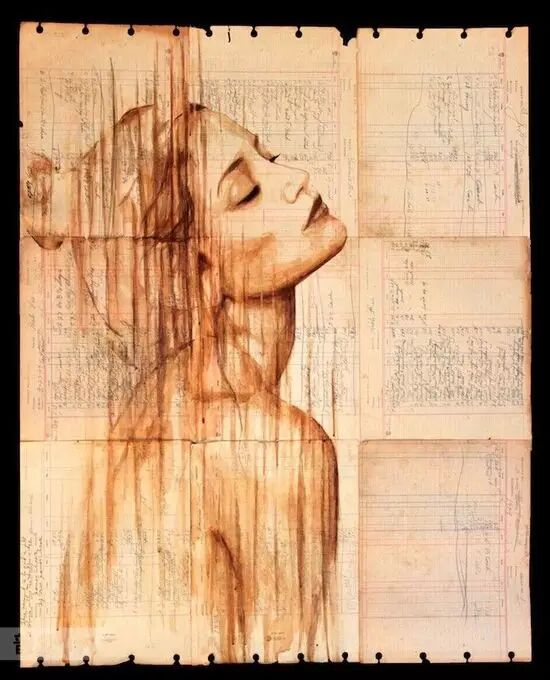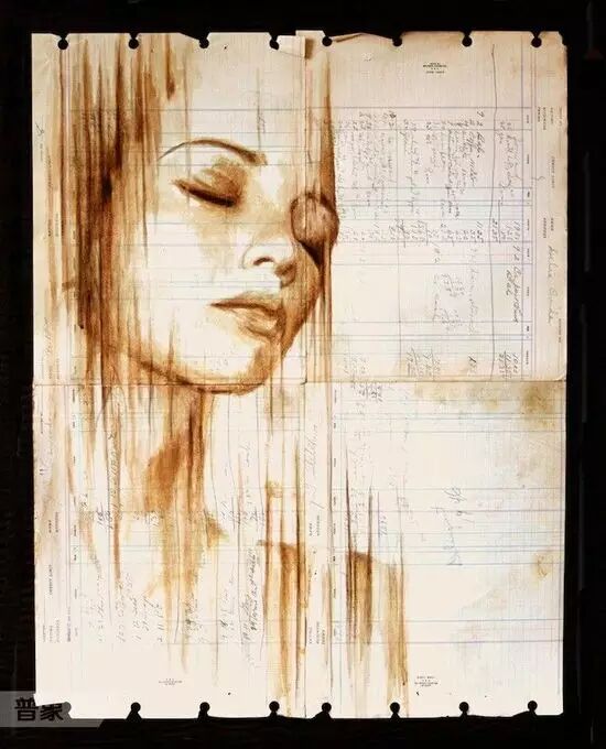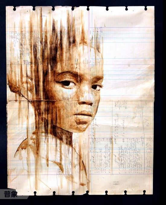 艺术家Michael Aaron Williams,在废旧的纸上使用咖啡画出栩栩如生的人物肖像,非常漂亮。
