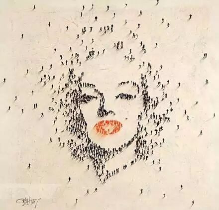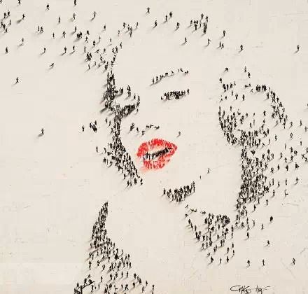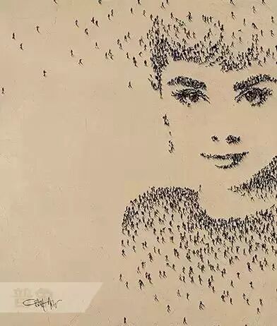 美国亚特兰大市的艺术家 Craig Alan 的经典作品。起初,他在一幢大楼上向下拍照时发现楼下的人群似乎呈现出某种图案。就那么灵光一闪,他邀请了数百人在一片海滩上站成名人明星的画像,然后自己在高空将这些很有创意的名人画像拍摄了下来。