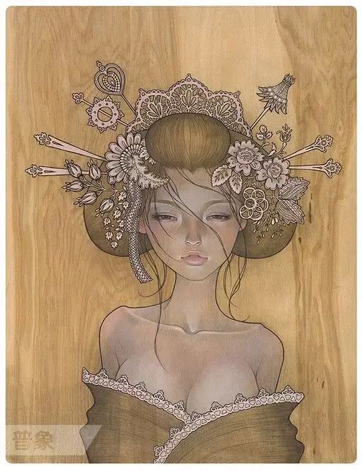 Audrey Kawasaki(奥黛丽川崎)是日裔美籍插画家,擅长木板作画。其画作是直接在木板上用油画颜料创作,有清晰的木纹,人物则是无辜、眼神充满忧伤感的美丽少女,令人过目难忘。