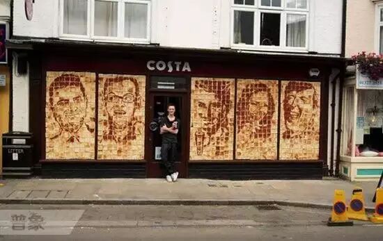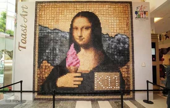 艺术家创作土司画 在艺术家的眼中吐司不仅仅是食物,新西兰的艺术家Maurice Bennett用土司面包创作了大型马赛克画作,而被其所在的小镇上的人们称为“吐司人”。