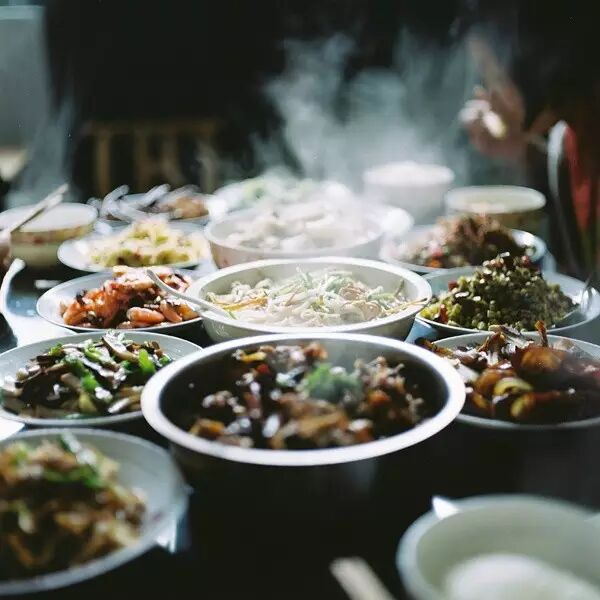 有的人家下午两三点就开始吃年夜饭了,吃饭之前一定要先放一挂鞭炮。