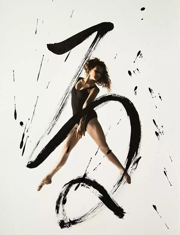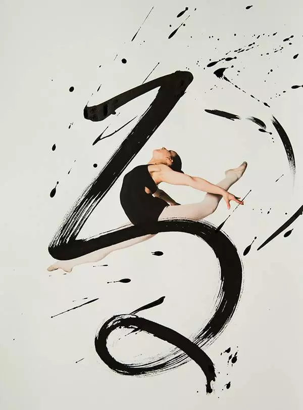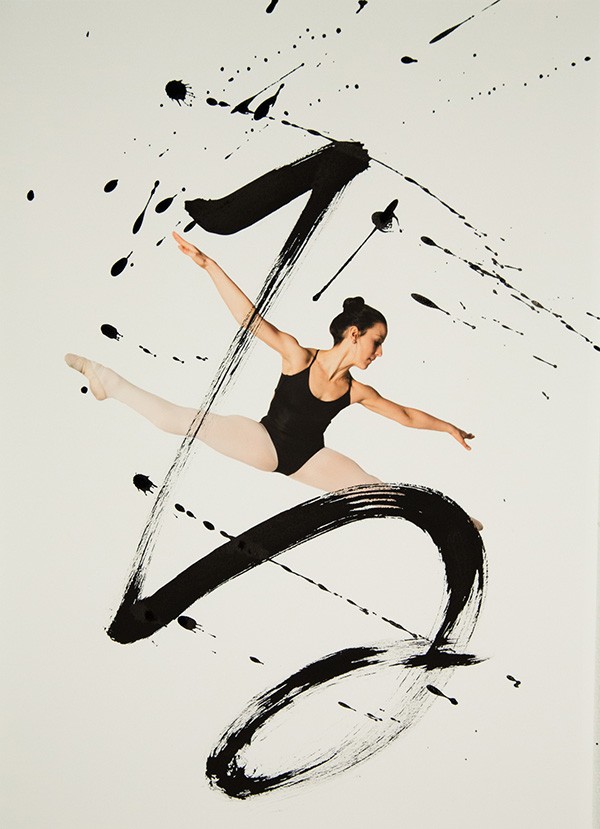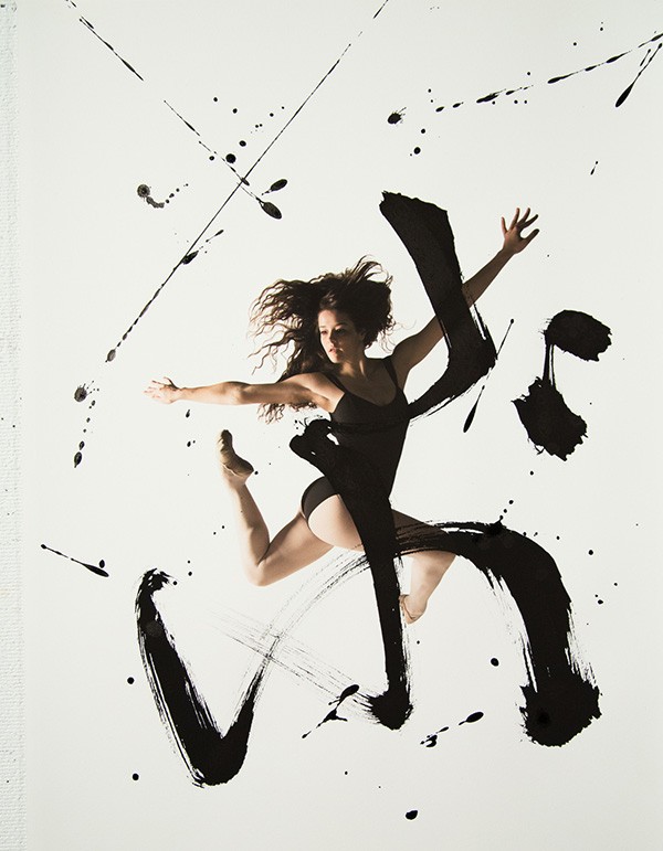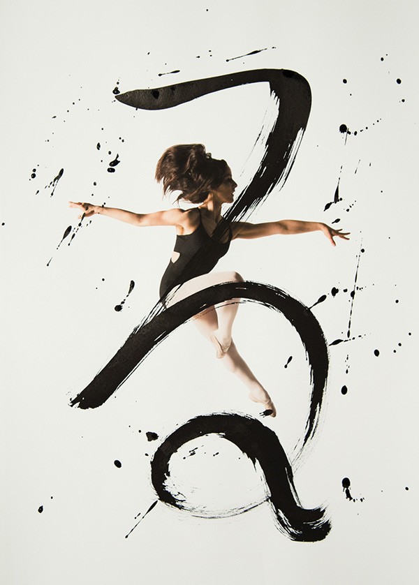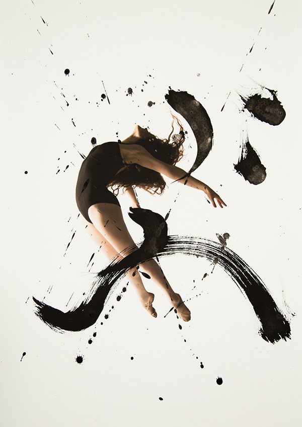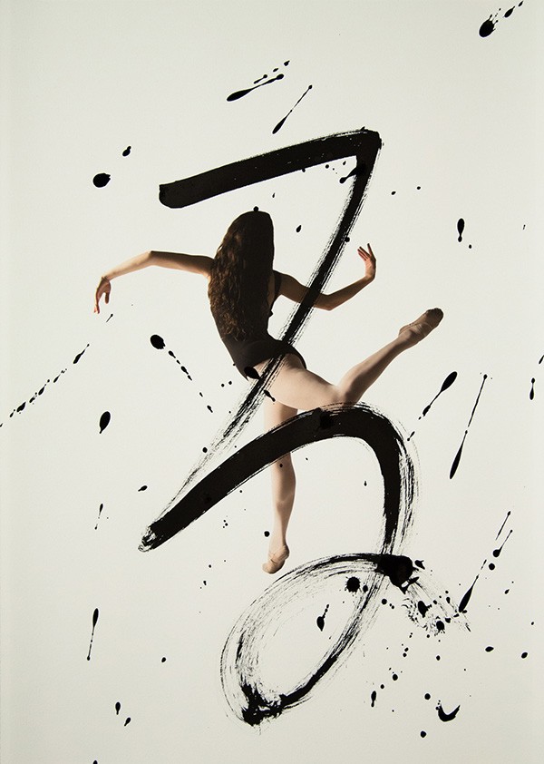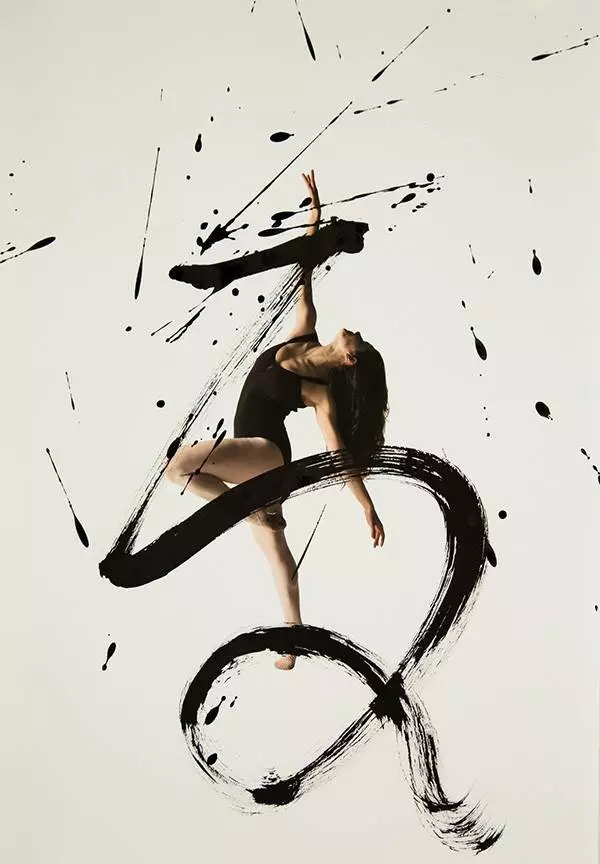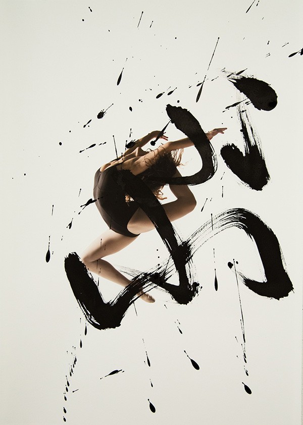 书法与舞蹈虽是两种艺术门类,但它们的审美属性是相通的—同为动态造型。舞蹈艺术的动态存在于表演过程中;而书法艺术的流动表现已经凝固的线条中,“舞蹈是动态的书法,书法是婀娜多情的舞姿。”这个作品是由多伦多的摄影师Haley Friesen和旧金山的书法艺术家Nobuhiro Sato合作完成的。