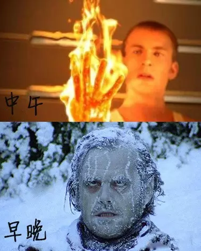 早晚冷,中午暖;刮风冷,不刮风热;穿少了冷,穿多了热;坐一下冷,走几步热,木有太阳的地方冷,有太阳的地方热。是的,这就是上海! 天放晴却又早晚低温的天气,根本是个不知道穿什么衣服的季节!