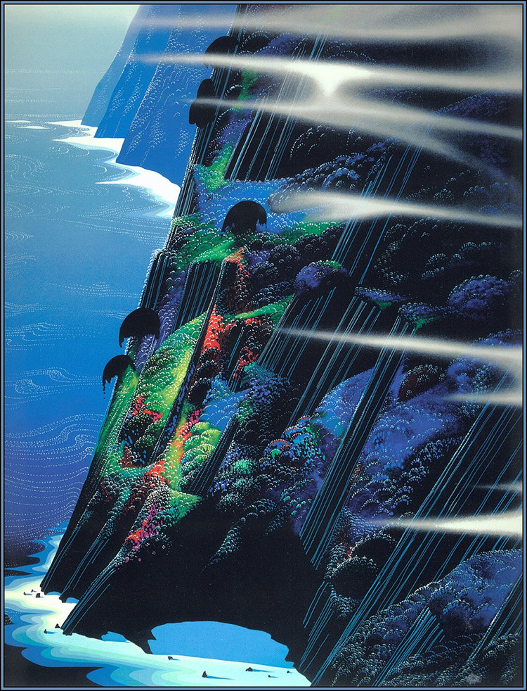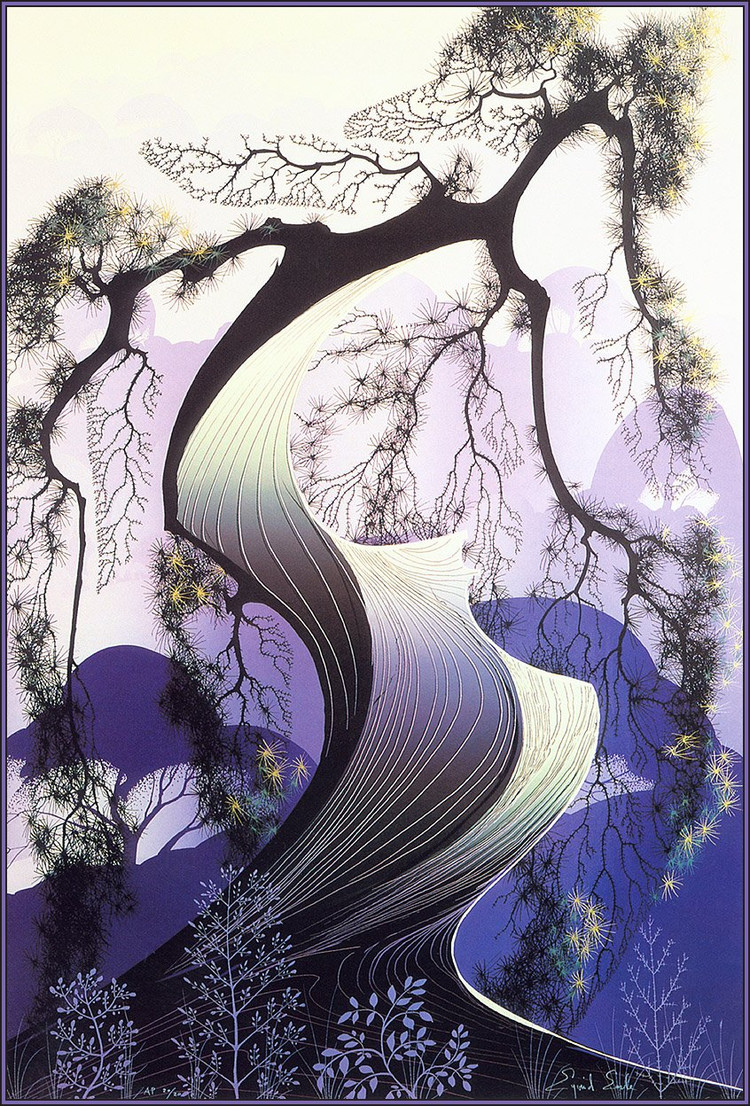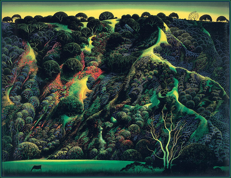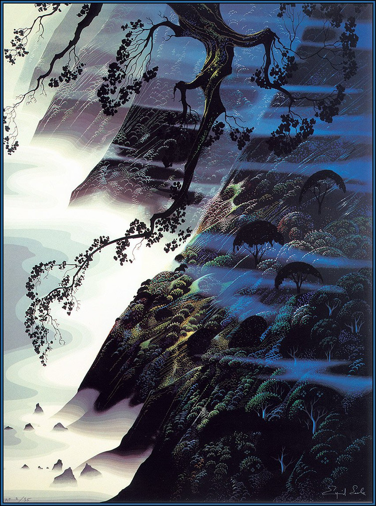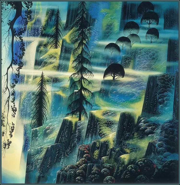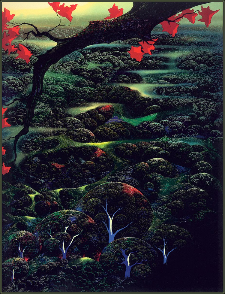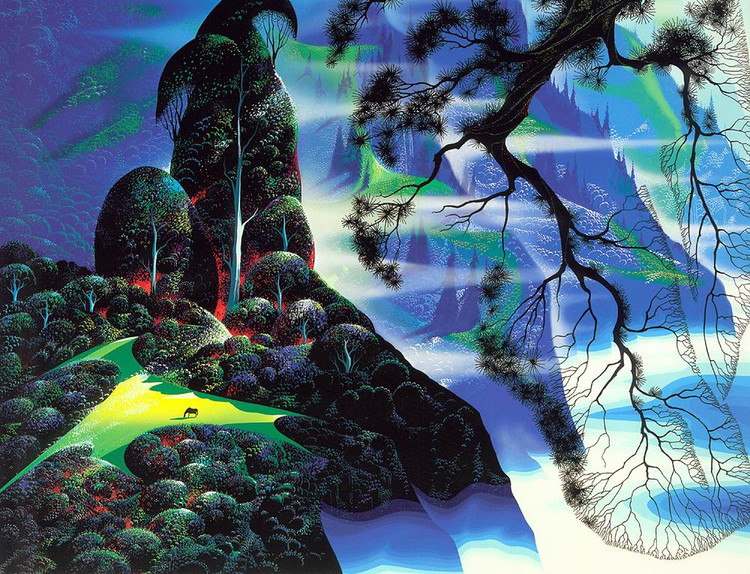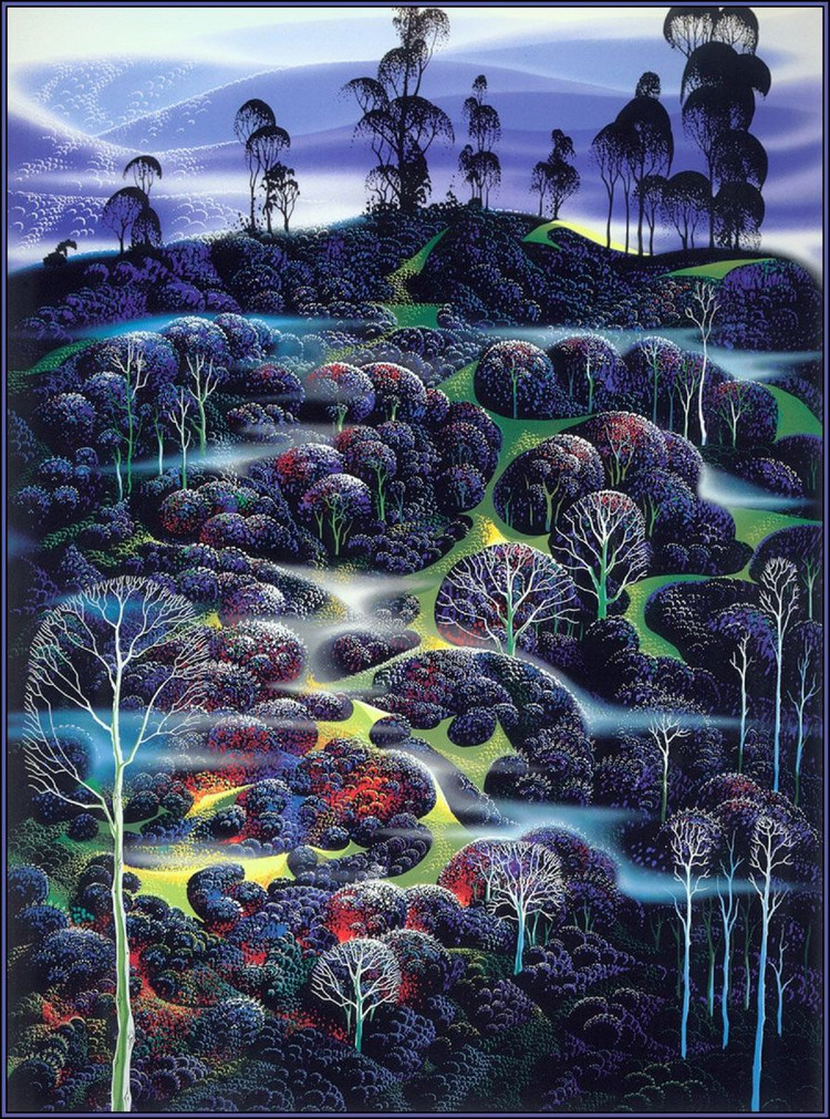 在网上没有找到关于Eyvind Earle的详细资料,只知道他是美国艺术家,他精美的装饰画作品给人一种视觉上的冲击。以下是网上关于他作品的评价: