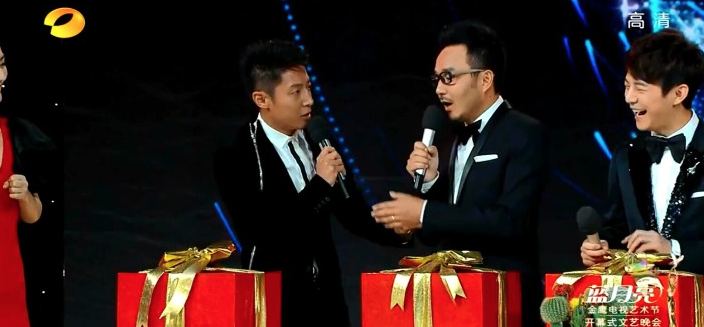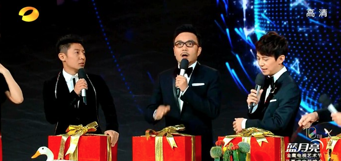 去年金鹰节,谢娜拿上四个盒子,盒子下面有四个物品,让主持人临场发挥把这些东西跟金鹰节联系在一起。