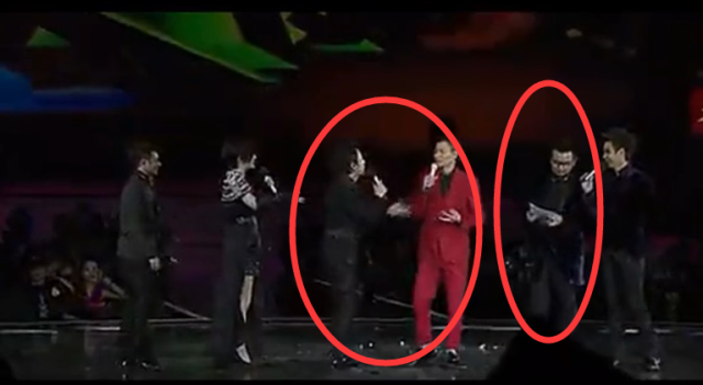 2012-2013年湖南跨年晚会,刘德华压轴演出,中间有全体主持人上台跟刘德华互动,何炅先开口,很习惯性滴说一些恭维刘德华的话,汪涵那头刚要说话,何炅就拍了刘德华后背一下,把汪涵的话抢了回去。