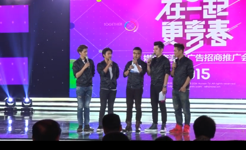 2015年湖南卫视招商会,《天天向上》《快乐大本营》是王牌节目嘛,有个环节就是这两个主持天团要到台上说两句。汪涵就带着天天兄弟上台,先说了几句客套话,然后说:“招”字我们都会写,一个提手旁,加上一个刀,下面一个口,就是说我们是提着一口刀来的。