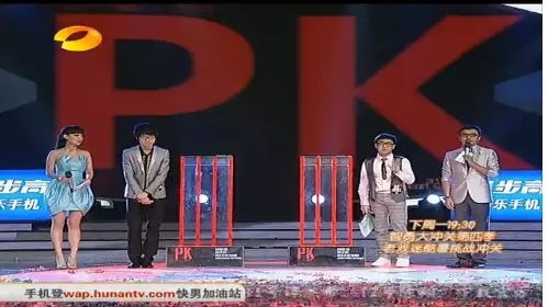 但是还好 我们场上有筷子,镜头切到何老师和华少;汪涵开始总结了。