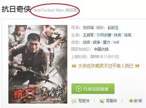 福利1:一部抗战神剧的神译名