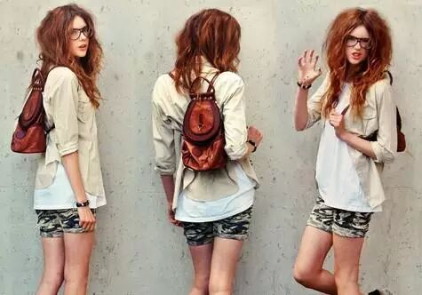 白米绿:迷彩军绿的热裤