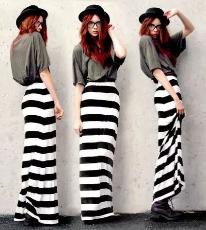 横条纹的大长裙是今年火热单品。外搭一件绿色短款的小背心不仅充满层次感更加个性有型。