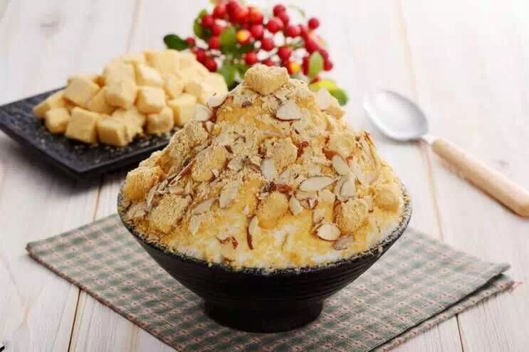 招牌年糕雪花冰则是另外一种口感了,牛奶与冰的完美搭配,混合着黄豆粉、花生碎末、核桃和年糕的雪花冰,少了些冰冻,多了层温和的感觉了。